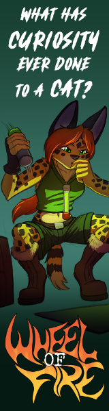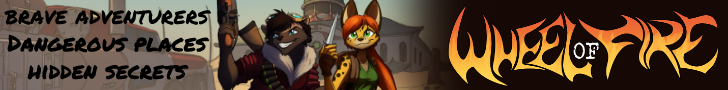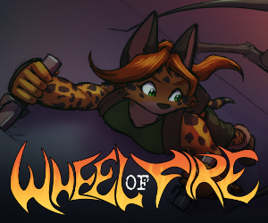 But money isn’t the only way to help Wheel of Fire. You can also help by simply spreading the word! Tell someone that you think will enjoy this comic, or use the link images below on your own websites to help promote us! Even that one act will be lending me great support.